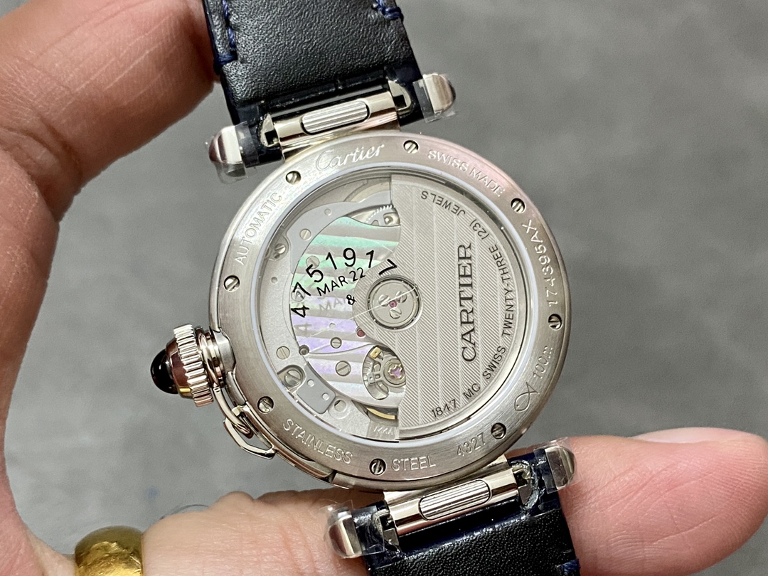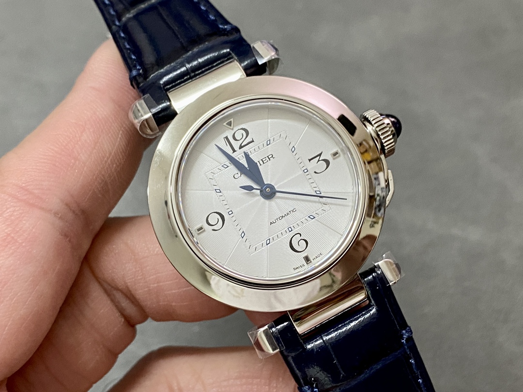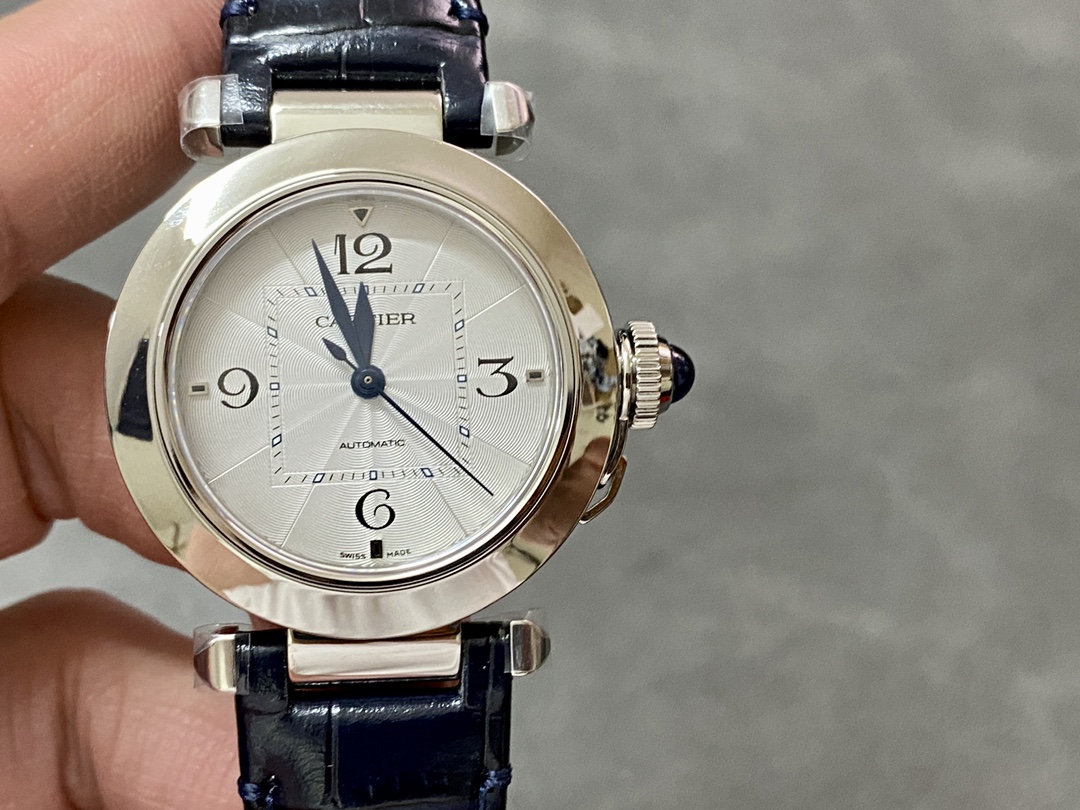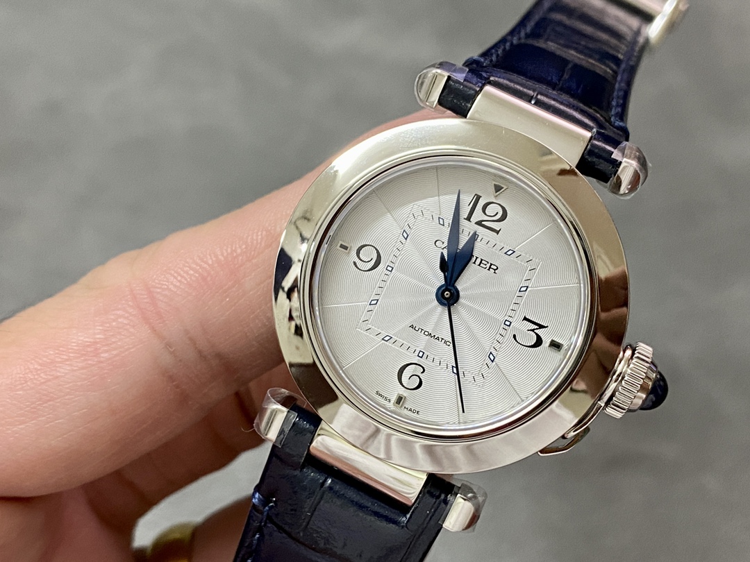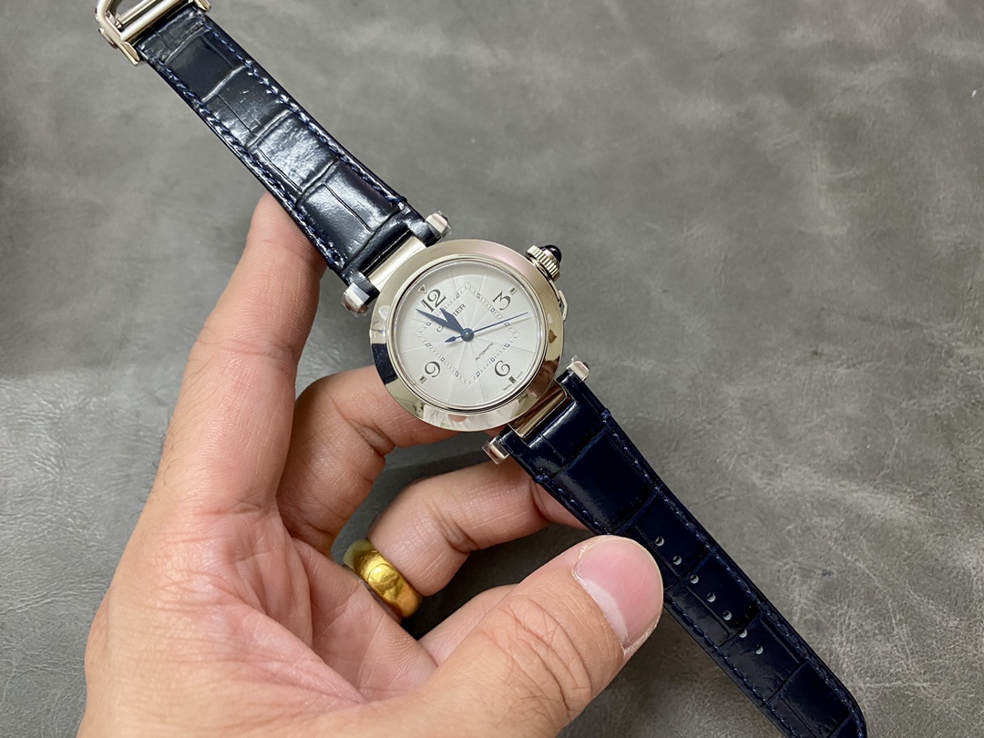BV Factory Cartier Pasha WSPA0012 35mm Steel Leather Strap White Dial