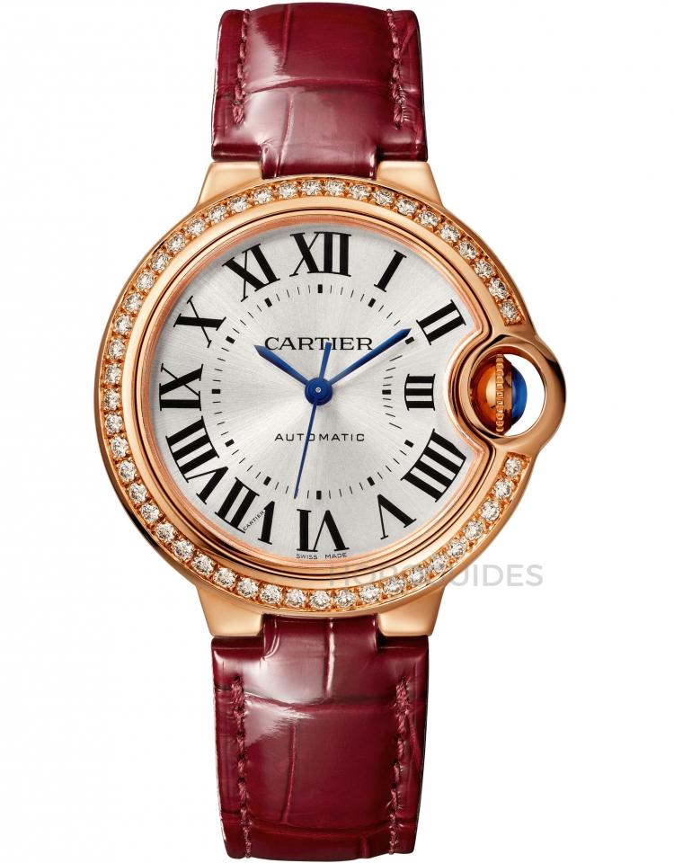 AF Factory Cartier Ballon Bleu WJBB0033 33mm Diamond Bezel Rose Gold Red Leather Strap Roman Numerals Silver Dial