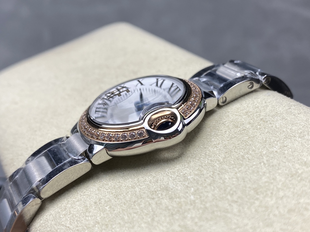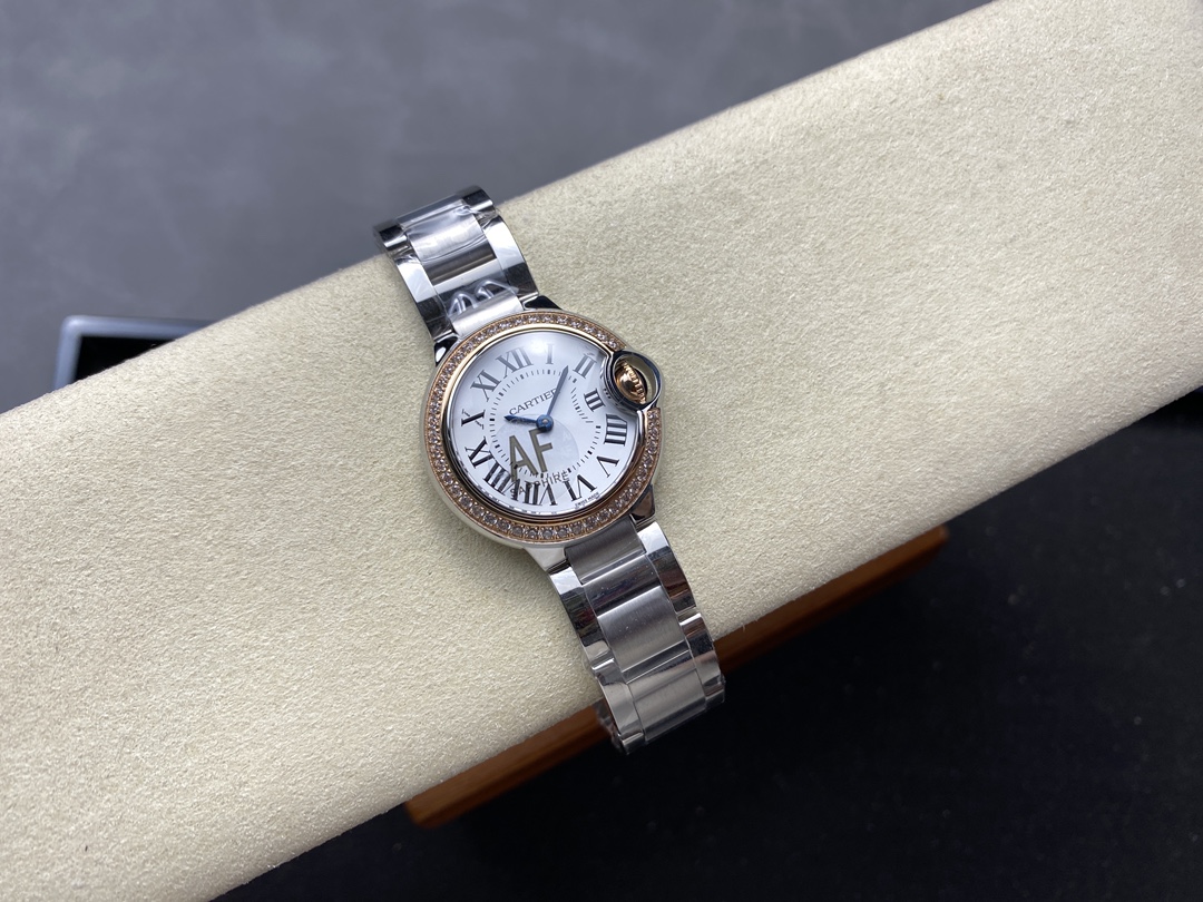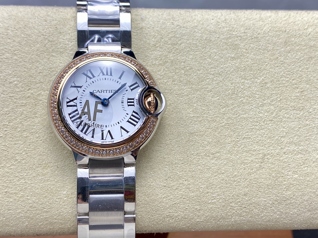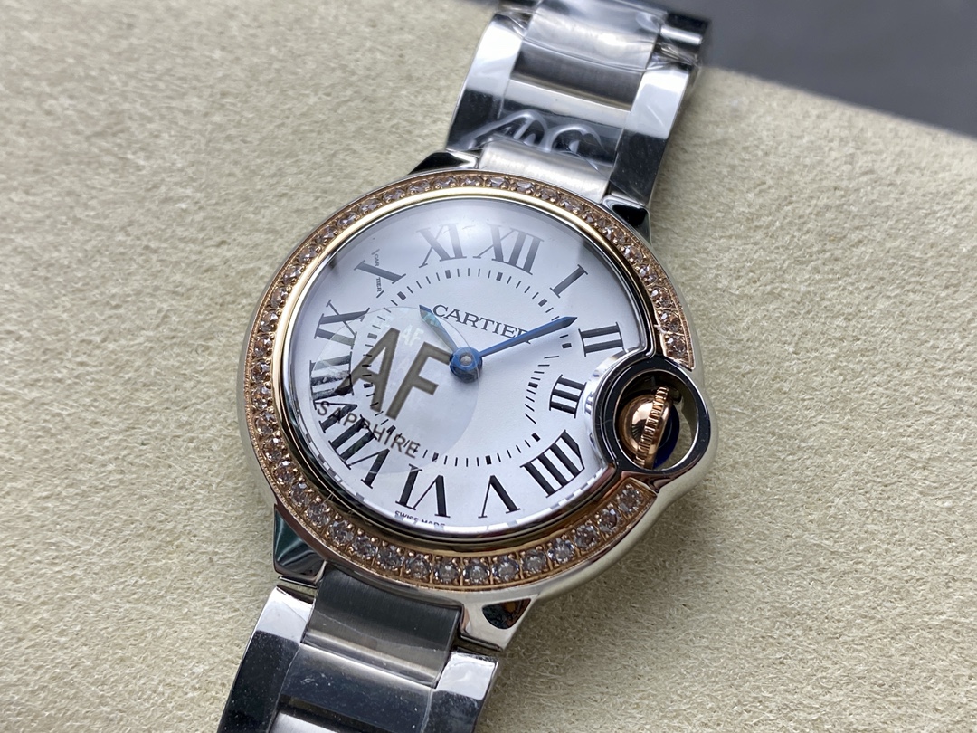 AF Factory Cartier Ballon Bleu WE902079 28mm Diamond Bezel Full Steel Roman Numerals Silver Dial