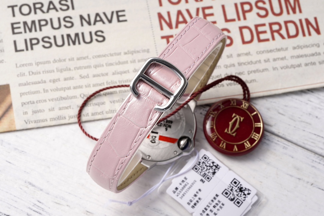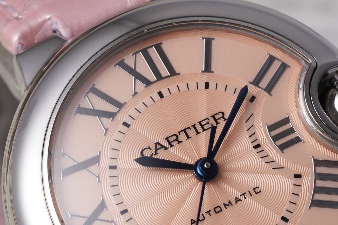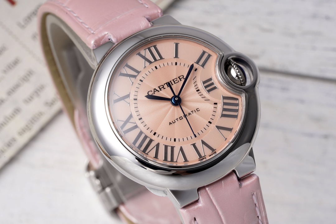 AF Factory Cartier Ballon Bleu WSBB0031 33mm Steel Leather Strap Roman Numerals Pink Dial