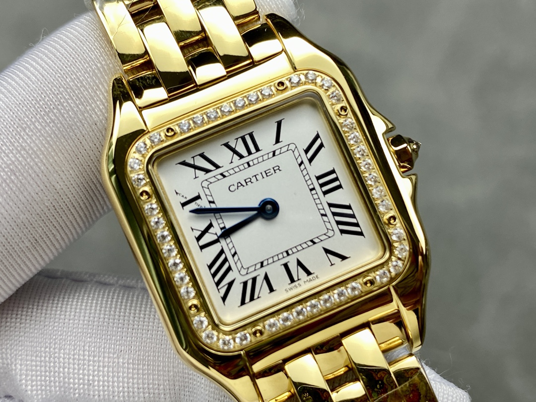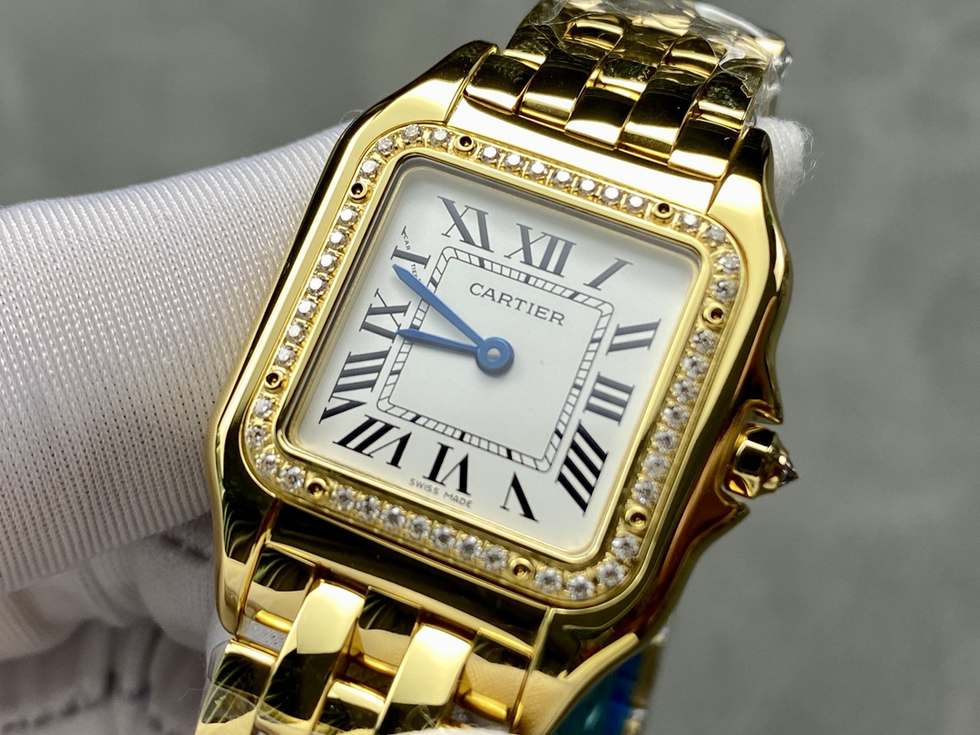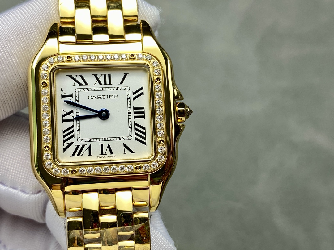 AF Factory Cartier Panthère WJPN0016 27mm Diamond Bezel Full Yellow Gold Roman Numerals Silver Dial