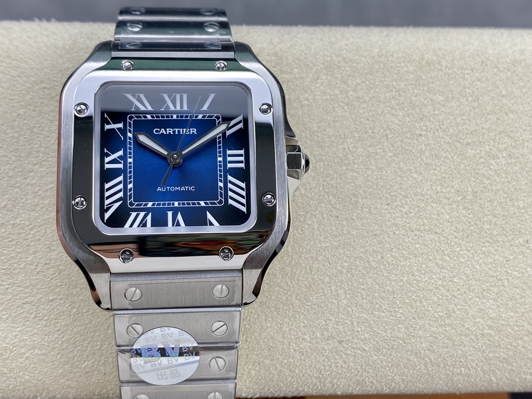BV Factory Women’s Cartier Santos WSSA0063 35.1mm Full Steel Roman Numerals Blue Dial