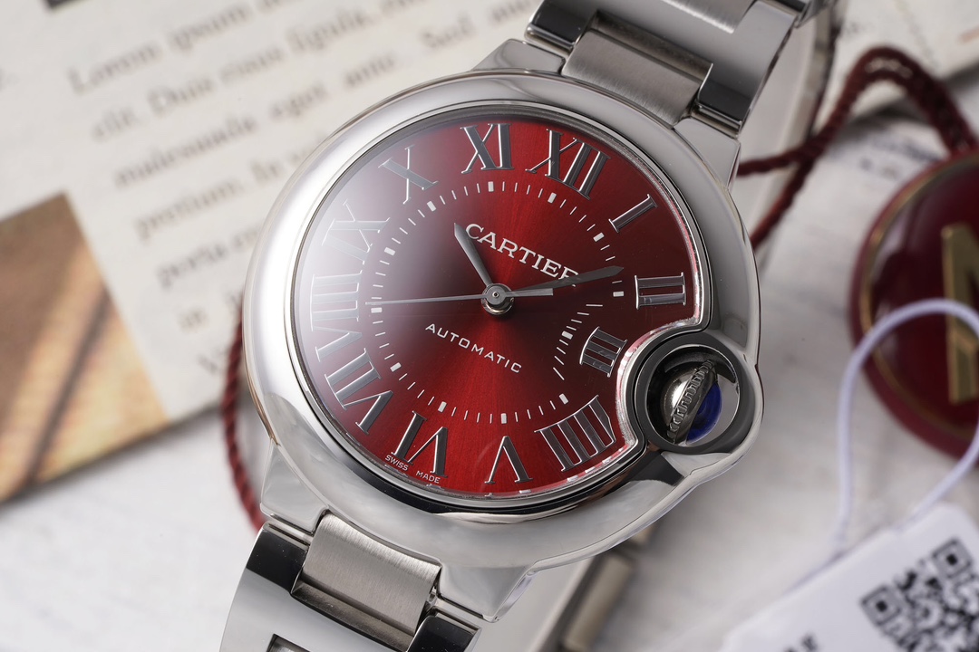 AF Factory Cartier Ballon Bleu WSBB0052 33mm Full Steel Roman Numerals Red Dial