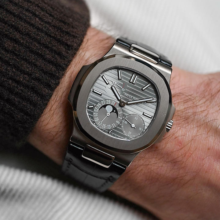 With its rounded octagonal bezel, its ingeniously unique porthole-structured case and its dial embossed with horizontal stripes, the Nautilus has perfectly exemplified the elegance of a sports watch since its introduction in 1976.