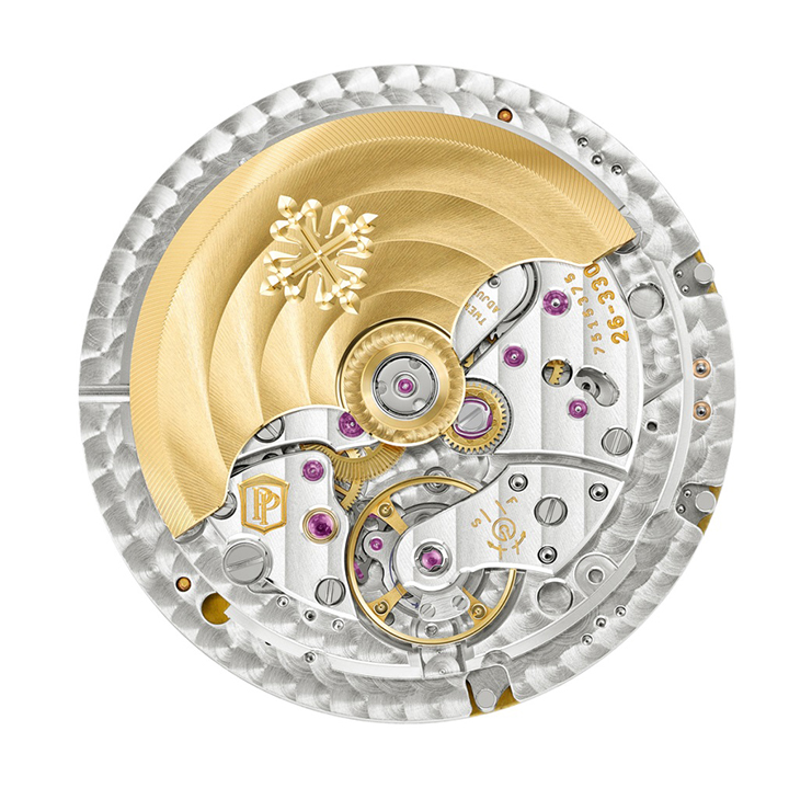 Diameter: 31 mm. Height: 4.82 mm. Number of parts: 290. Jewels: 29. Power reserve: Min. 35 hours - max. 45 hours. Winding rotor: 21K gold central rotor. Balance: Gyromax®. Vibrations/hour: 28 800 (4 Hz). Balance spring: Spiromax®. Hallmark: Patek Philippe Seal.