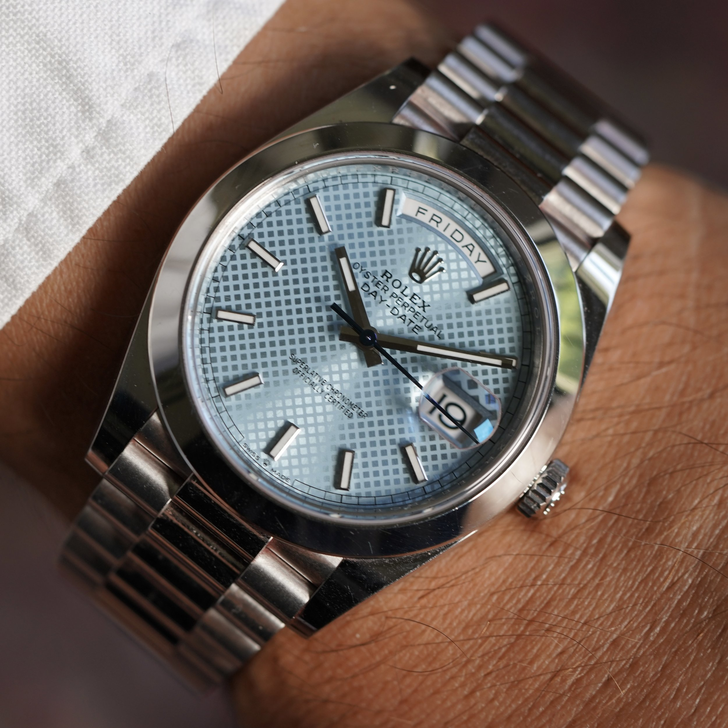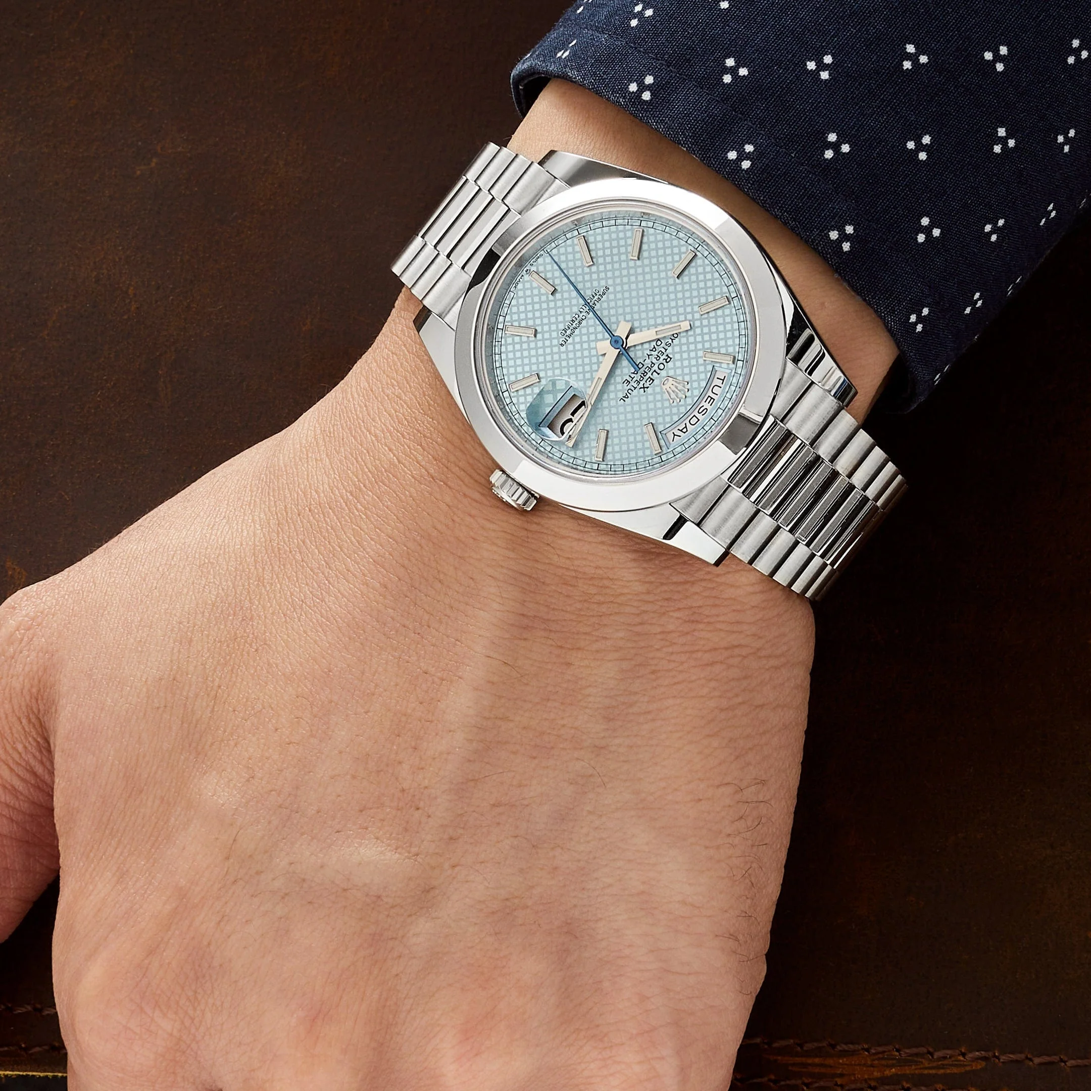 Rolex Day-Date 228206 Ice Blue Motif Dial Platinum 40MM Mens Replica Watch