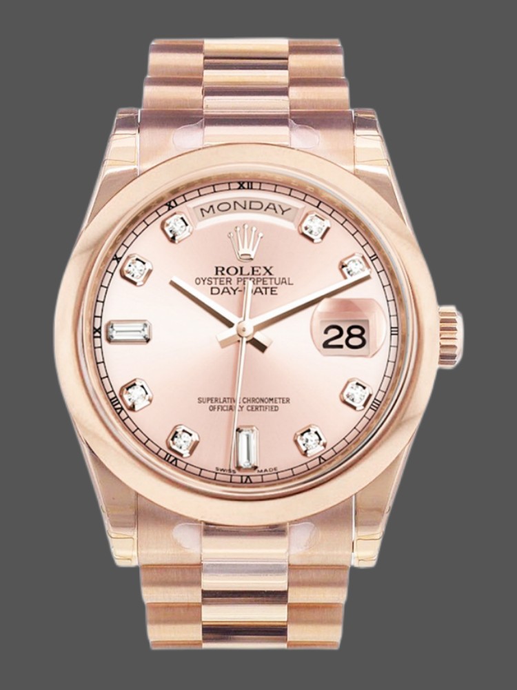 Rolex Day-Date 118205 Pink Diamond Dial 36mm Unisex Replica Watch