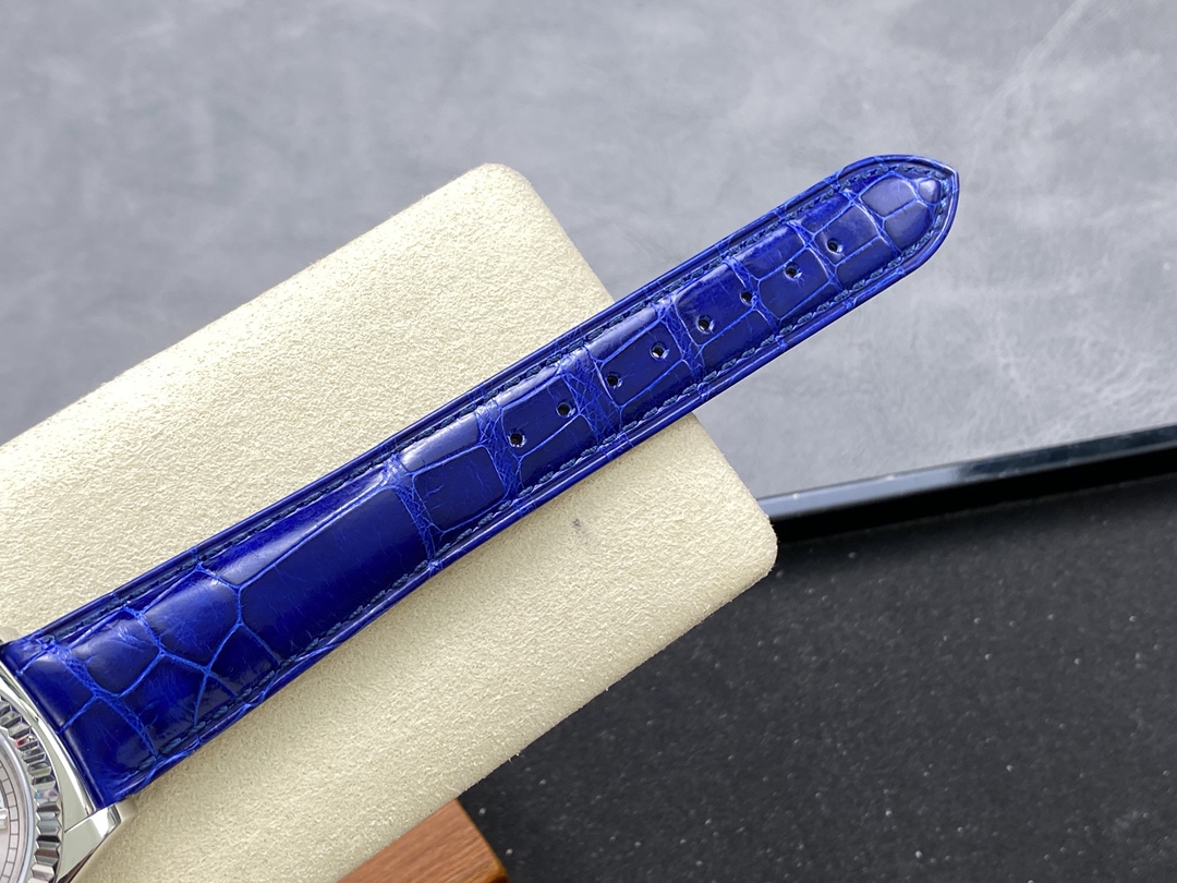 Rolex Day Date 36 White Gold Silver Dial 118139 0097 Blue Leather Strap
