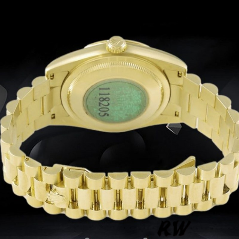 Rolex Day-Date 118238 Yellow Gold Silver Diamond Dial 36mm Unisex Replica Watch