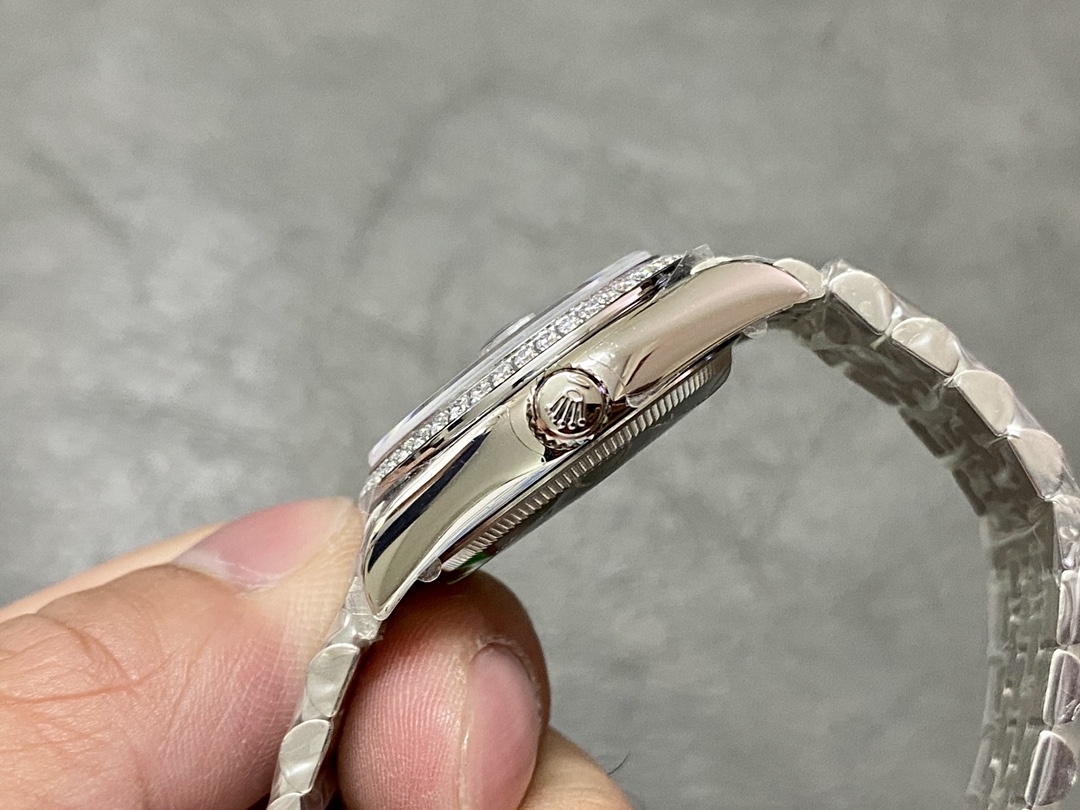 Rolex Day-Date 118389 Diamond Bezel MOP White Dial 36MM Unisex Replica Watch