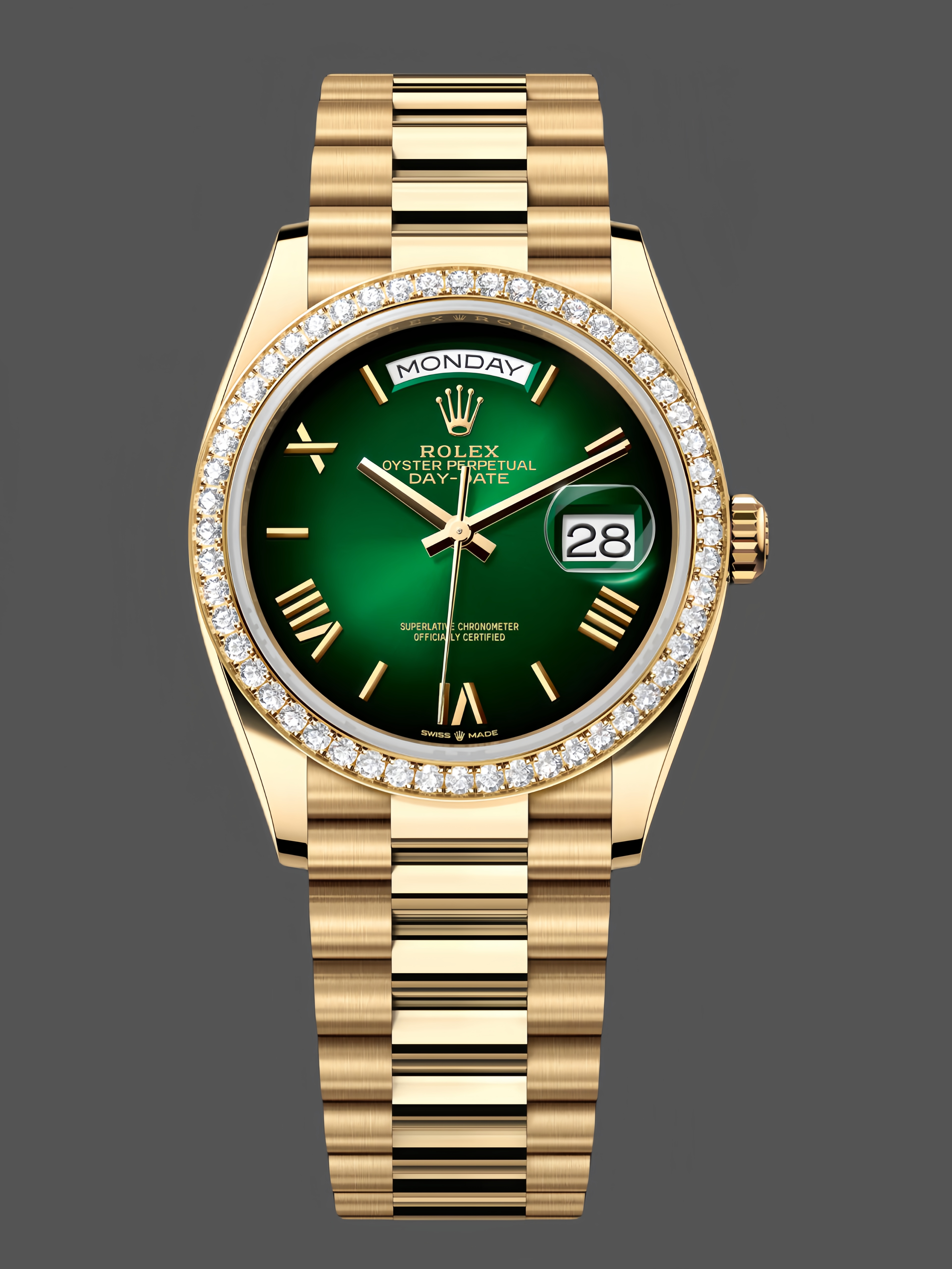 Rolex Day Date 36 36mm Green Ombré Dial Diamond-Set Bezel President Bracelet m128348rbr 0068