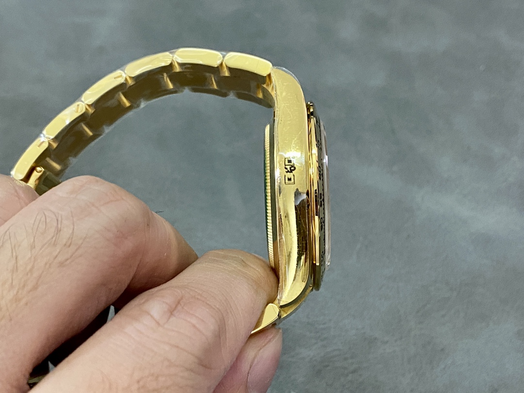 Rolex Day-Date 118208 Yellow Gold Arabic Numeral Wave Champagne Dial 36mm Unisex Replica Watch