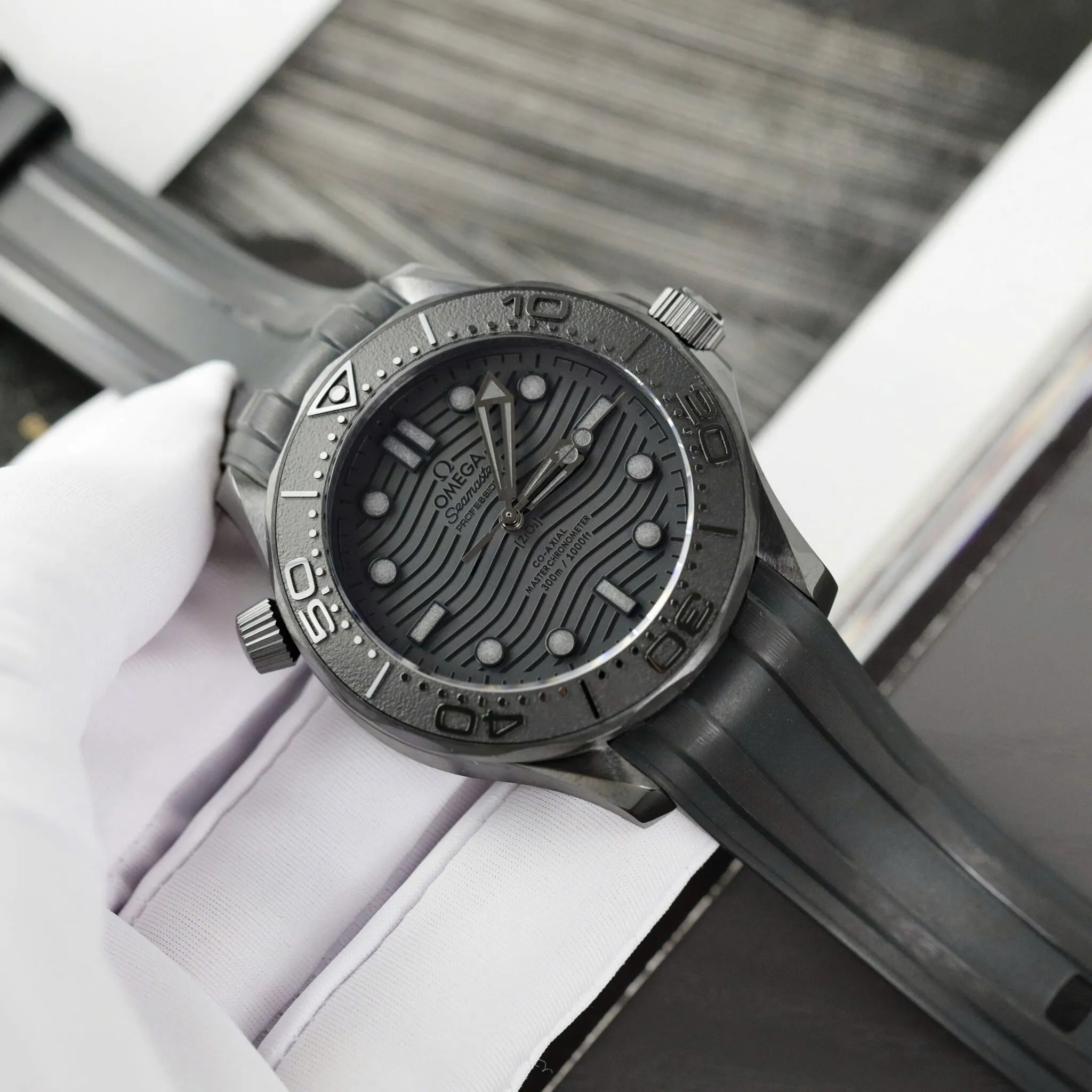Omega Seamaster Diver 300M Black Black Ceramic Rubber Strap 43.5mm